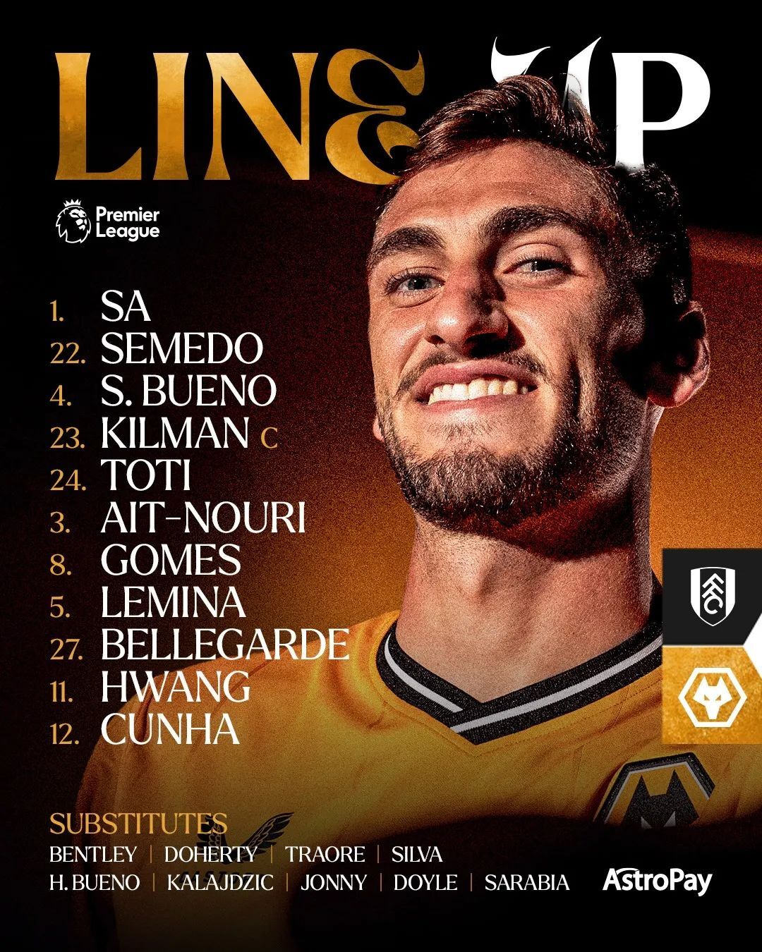 北京时间11月28日04:00,英超第13轮,我狼在客场迎战富勒姆。