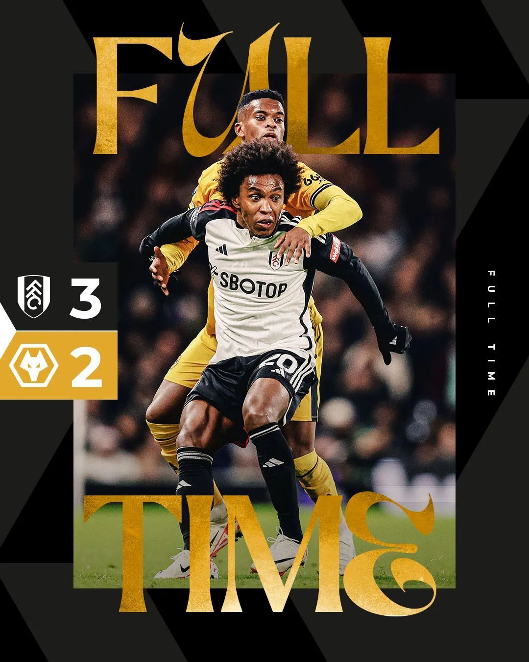 最终全场比赛结束,我狼在客场2-3不敌富勒姆。