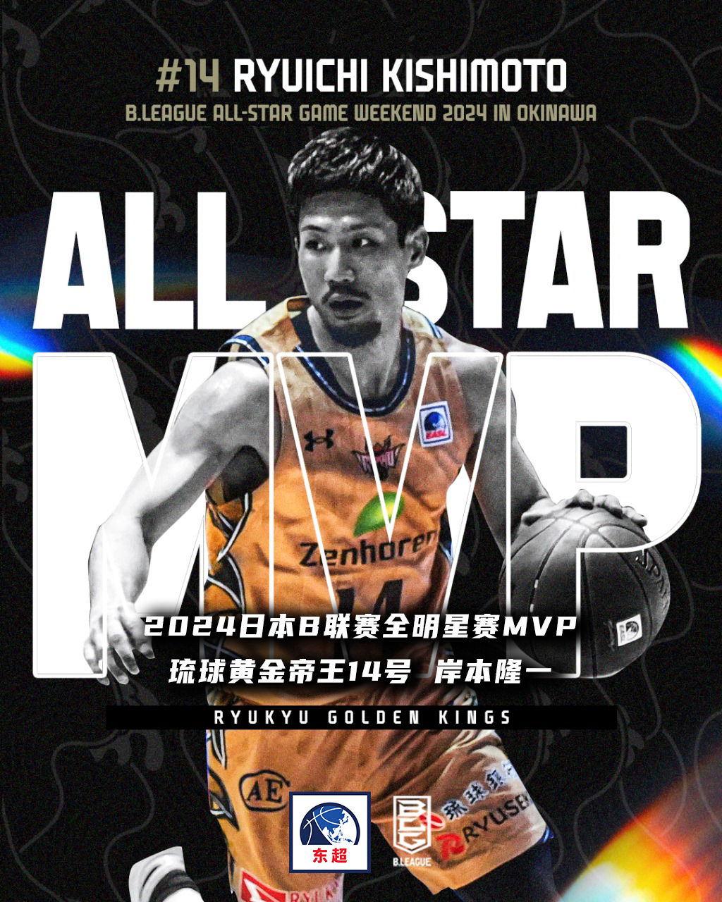 作为本届B联赛全明星周末的重头戏,最大新闻则是东超主客场首赛季参赛球队兼B联赛卫冕冠军琉球黄金帝王的LOGO之一、《灌篮高手》续集的创作原型——岸本隆一,以落败方的身份荣膺MVP。