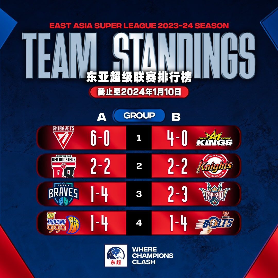 上周末,日本B联赛和韩国KBL联赛均举办了全明星周末,东超主客场首赛则是本周三轮休,下周三继续战斗。