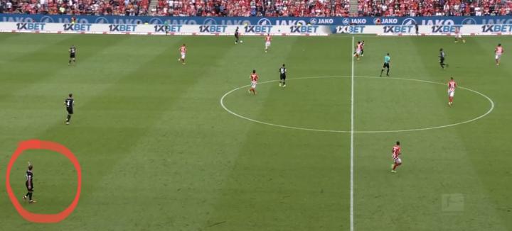 本场比赛使用正牌中卫科赫踢边中卫的意图让人费解,兴许是觉得科赫作为居中的横向移动差,又或者认为克瑙夫在右路要上前,需要一个人在这一侧站稳,但实际上科赫也并未真正打出纵向防守的统治力,如果不是对位的姆韦内周二才到达美因茨,此前在埃因霍温一直没有出场,他上半场就会暴露。