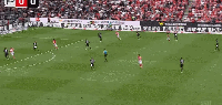 双方刚开始进行赛前仪式,美因茨市突然下起了大雨。法兰克福是率先获得球权的一方,这并不奇怪。托普穆勒从季前赛开始,就更喜欢要求本方来发起进攻。而两侧的进攻套路,在发起上都比较一致:主要依靠一侧的攻击手回撤拿球后做球给面前的中场或边翼卫,后者设法将球送给此时在中路突进的前锋。