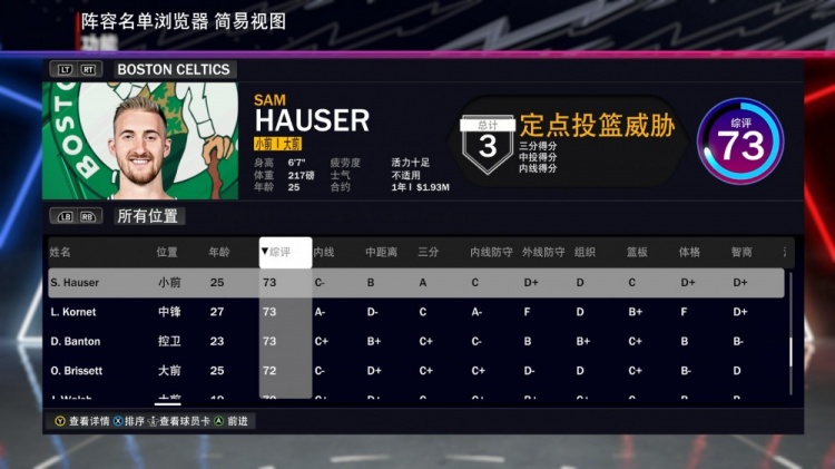 9月8日讯 NBA2K24能力值正式公布,凯尔特人全队能力值如下:
