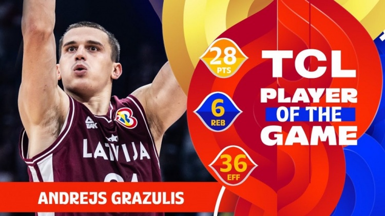 据FIBA官方消息,格拉祖利斯当选为本场比赛最佳球员。