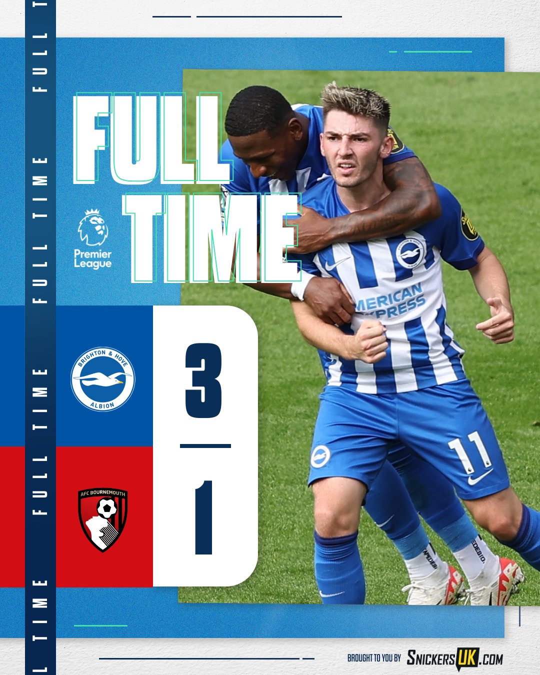 9月24日讯 英超第6轮,布莱顿3-1战胜伯恩茅斯,升至英超积分榜第3。