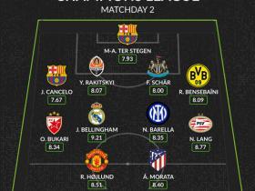 Whoscored 本周欧冠最佳阵容Whoscored 本周欧冠最佳阵容