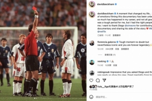 小贝晒98世界杯染红名场面:改变一生时刻,感谢西蒙尼分享的故事