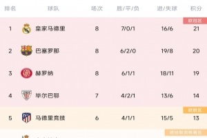 西甲积分榜:皇马1分优势力压巴萨登顶 赫罗纳输球降至第三西甲积分榜:皇马1分优势力压巴萨登顶 赫罗纳输球降至第三
